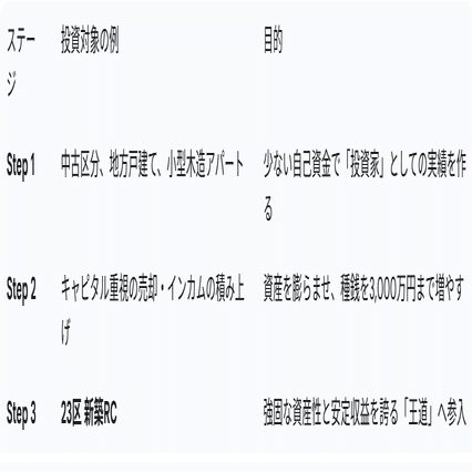 「今、3,000万円なんて持っていない」という方は絶望する必要はありません。多くの成功者は、最初から大金を持っていたわけではなく、**「投資のラダー(梯子)」**を一段ずつ登ってきました。